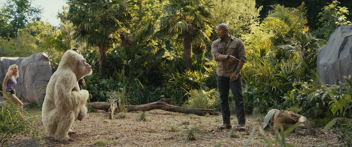 Indeed, by that time in the shoot, the two actors had already established their relationship on-screen, making the intimate moment all the more believable. Weta Digital had to take the on-set performances and add to the emotion. “You can tell George is about to die and The Rock’s getting emotional and George is getting emotional and there’s some nice little sign language moments of, ‘I saved you…’” says Martin. “It was a tricky moment to pull off, and then changes when it’s revealed he is just joking.”