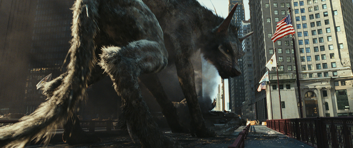 Ralph is Weta Digital’s third large-scale monster, and takes the form of a mutated gray wolf. He starts his journey to Chicago from Wyoming, taking out a group of mercenaries (and their helicopter), and a tour bus, before wreaking havoc in the big city with the others.