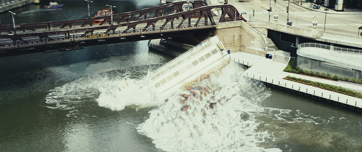 For a number of key shots, such as Lizzie’s arrival into Chicago, aerial plates were required. Winquist praises aerial coordinator and pilot Frédéric North for being able to fly a helicopter expertly over the city. “There’s that one shot in particular where we first see Lizzie come out of the water, the big 270 degree orbit around the bridge,” outlines Winquist. “I’m looking around like, ‘There’s no way the city’s gonna let him fly a helicopter and do this path.’ Because he winds up in the air and he comes down almost to street level. And he did it. It’s some of the coolest aerial photography I’ve come across.”