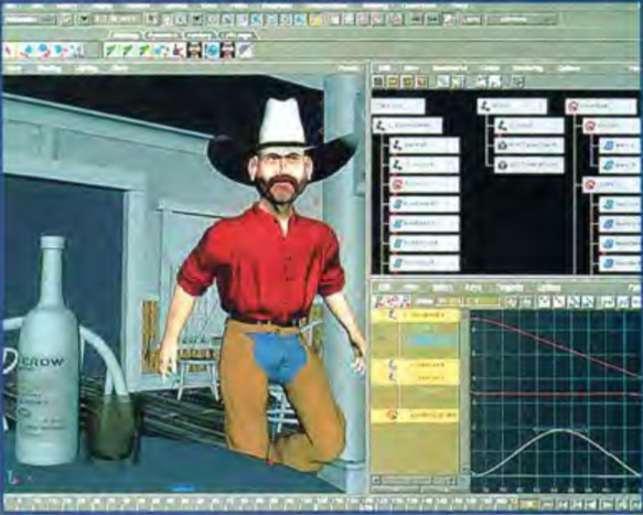Jason Schleifer: I think the Wavefront guys were saying that the goal with Twister was to be able to have a character on a skateboard, holding a rope, and then you could pull the rope which would affect the character and then his friction on the skateboard would move the skateboard forward, and the wheels would move properly. Which is still hard, dammit!