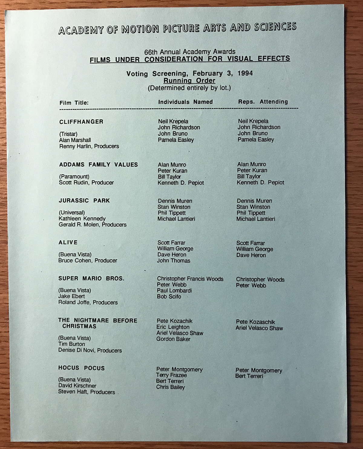 – Chris Woods, visual effects designer and supervisor, Super Mario Bros.